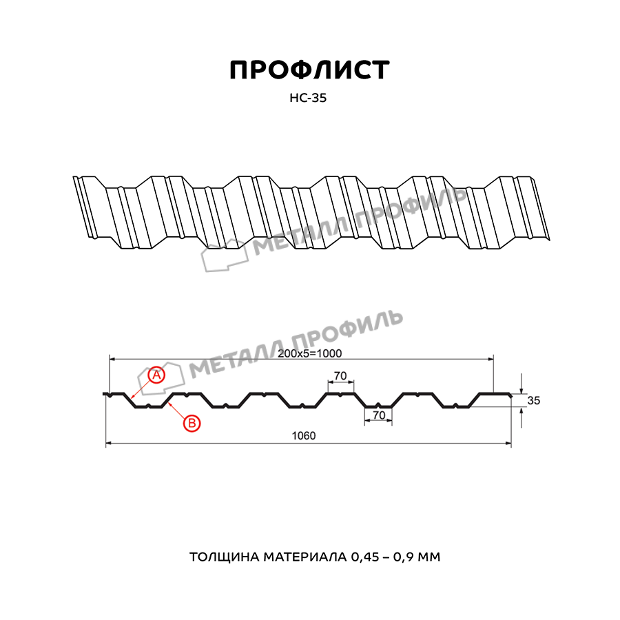 Многофункциональный и практичный стройматериал с одинаковым с обеих сторон профилем. Пометка НС говорит о том, что профлист является и «несущим», и «стеновым». Он пользуется популярностью как при строительстве частных домов, так и для промышленных объектов. С помощью профлиста с глубиной гофры в 35 мм возводятся строения абсолютно разного назначения: ограждения частных и общественных территорий, обустройство кровли, каркасные здания ( цеха, торговые центры, склады ), быстровозводимые сооружения ( навесы, павильоны ). Отличную способность выдерживать нагрузки НС-35 обеспечивают специальные желобки, проходящие с обеих сторон листа. Рабочая ширина этого профиля достигает 1000 мм при номинальной ширине 1060 мм, таким образом, при монтаже этого профнастила в боковое соединение скроется 60 мм. Толщина стали имеет диапазон от 0,5 до 0,9 мм – это обуславливает не только механическую стойкость профнастила, но и его вес. Полимерный слой из каталога Компани Металл Профиль добавит профлисту дополнительную стойкость к коррозии и ультрафиолету.