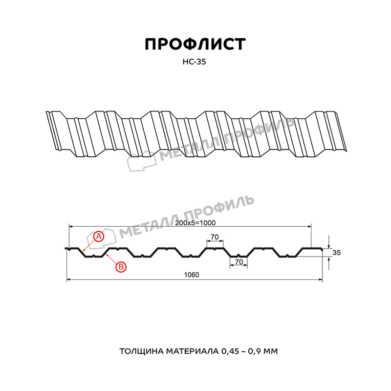 Профлист Металл Профиль HC35 0.45 Полиэстер двусторонний RAL 9003 Белый A